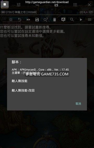 replyreload += ',' + 2201269; 1.此腳本不會檢查遊戲版本,所以不用每次改版都要改版本號碼,若找不到結果就表示版本更新不適用了! 2.新增X86版本,此版本適用在mycard apk版在模擬器或某些intel