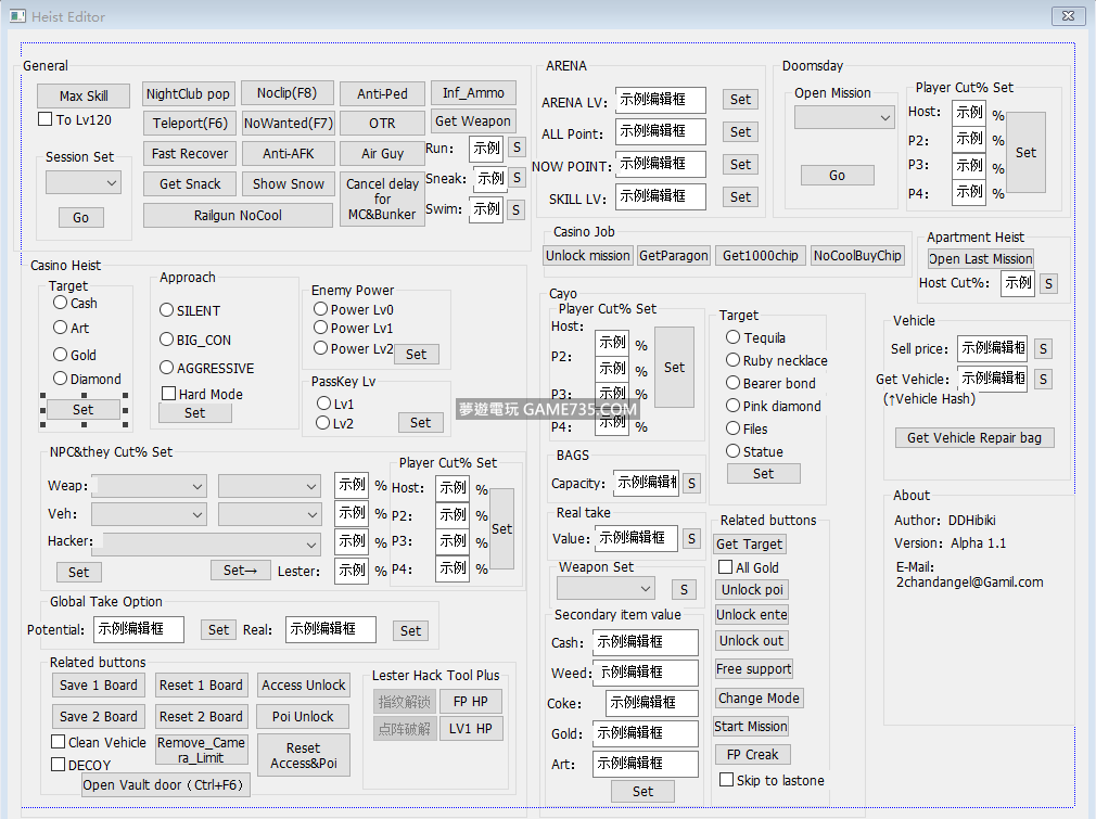 replyreload += ',' + 2273393; GTA 5 Heist Editor 是最好的 Heist 相關 mod 菜單/工具之一,它將幫助您輕鬆完成搶劫,您可以使用許多菜單功能,如傳送器、支出和許多其他功能。 這是一個外部菜單,您不必注