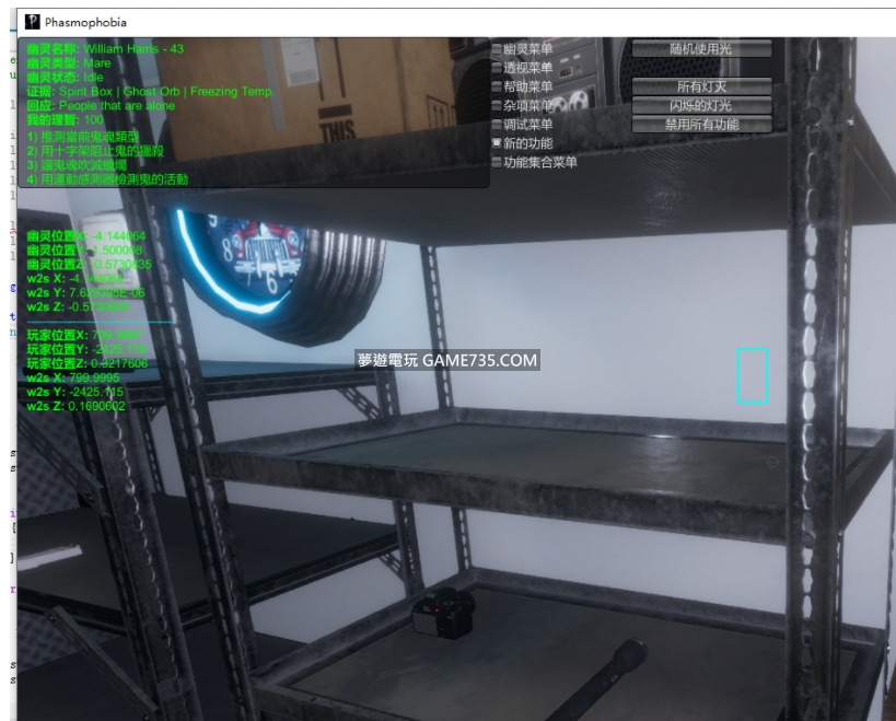 replyreload += ',' + 2273497; 快捷鍵: INS| DEL| 右Ctrl | →:打開菜單 ↑:透視 ←:基本信息 ↓:全亮 H:強制幽靈獵殺 I鍵:強制鬼與門/書/物體互動 O鍵:強製出現鬼影 P=強制鬼停止獵殺/出現 L=鎖定所