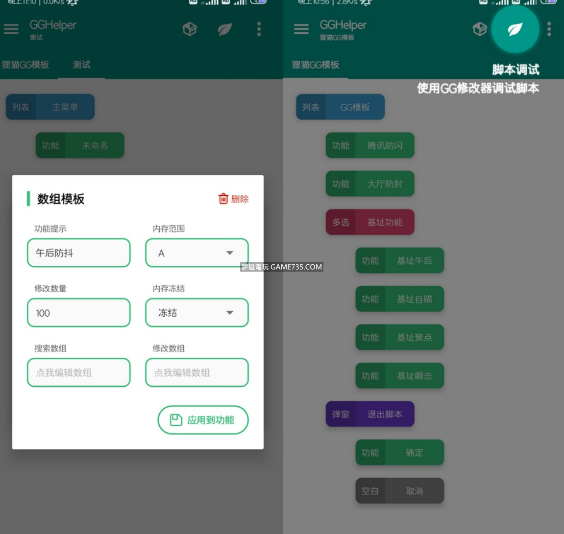 正文摘要:replyreload += ',' + 2276809; GG修改器免root權限使用+GG修改器框架下載 https://www.game735.com/thread-353957-1-1.html 軟件介紹 lua腳本可視化開發工具-GG可視化開發工具-GGHelperlua腳本可視化開發工具 新手教程 一. 首先下載GGHelper,打開之後過完新手引導 第一次使用會加載一個模板,這個你們以後慢慢琢磨 二. 點擊左上角工程菜單 三. 點擊新建,並選好路徑,填好工程名稱 四. 之後,工程列表就會多出一個新工程,點擊它,會自動加載工程標籤 小技巧: 長按標籤可以關閉標籤,點擊工程會再次出現,長按工程會刪除工程 五. 點擊節點,選擇你需要的節點類型 六. 我們可以設置節點屬性,或添加新的子節點 七. 設置節點類型為"功能" 八. 點擊節點,設置功能名稱,這裡設置為"A" 九. 點擊"編輯該功能" 如果我們只需要普通的搜索改善,可以使用"數組模板"。 反之,如果需要複雜的操作,請使用"函數自定義",這裡就不多說了。 十. 點擊"數組模板" 如果你需要修改多個值,可以繼續添加模板(例如 xx功能第一步 第二步) 十一. 填好數據後,一路保存 十二. 回到主頁,點擊右上角小箱子即可另存為一個新的文件 如果需要直接保存到該工程,請點擊右上角三個點,選擇保存 本軟件沒有自動保存(耗時太長),為防止數據丟失,請及時保存 切換標籤時會自動將工程保存一次 接下來是GG調試 如圖所示,使用GG修改器,切換到你需要修改的進程(如果沒有,就隨便找一個) 執行/sdcard/GGHelper/debug/run.lua腳本,該腳本會與本軟件建立偽•即時通訊連接 這時就可以使用GGHelper的調試功能了 點擊右上角的小葉子,它會自動執行當前打開的工程,並自動打開GG修改器 所有站內附件皆會附上安全掃描報告請會員查看純淨度百分比後判斷使用(adsbygoogle = window.adsbygoogle || []).push({});相關檔案須知:取得檔案前,請先詳細閱讀文章內容避免不必要錯誤與誤會發生。也可多參考文章討論樓層內容了解附件檔案相關討論資訊。 【此文章部分內容隱藏中】 解除隱藏說明教學點擊下方 繼續閱讀文章 後請仔細觀看文章內容 並依照指示進行下一步最後完成解除隱藏後系統會回到此文章自動顯示隱藏內容~繼續閱讀 replyreload += ',' + 2276809; |