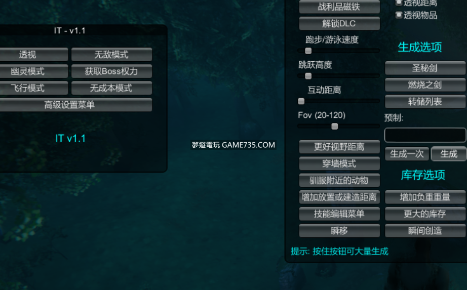replyreload += ',' + 2280705; 功能: ~透視~ - 敵人透視 - 物品透視 - 射線透視 - 透視距離 ~玩家~ - 無敵模式 - 獲取5個Boss的權力 - 幽靈模式 - 飛行模式 - 無成本模式 - 無限耐力 - 戰利品磁鐵 - 解鎖 DLC