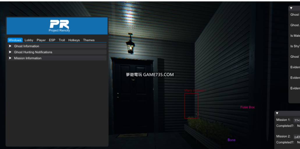 replyreload += ',' + 2283340; 功能 大廳選項> 強制開始游戲(必須是房主並選擇地圖) 檢測誰是房主 玩家選項> 名字修改 抓取|投擲距離修改 無限耐力 視野修改 穿門 自殺 死後互動(自殺後才有效) 透視