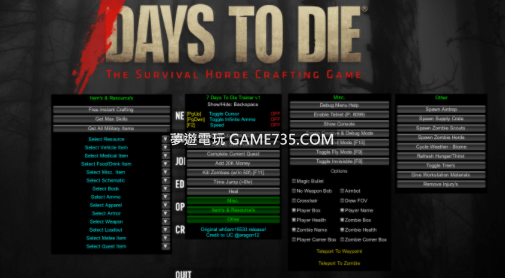 replyreload += ',' + 2289160; 這不會繞過EAC。如果加載後遇到黑屏,則可能啟用了EAC。在7DTD的啟動器中將其禁用。 解鎖創意菜單和調試菜單 功能列表: 背包擴容 修改經驗、等級、技能、技能點 信息菜單、數據