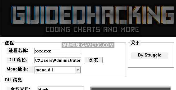 replyreload += ',' + 2289644; 使用方法: 1.輸入目標進程名【***.exe】 2.添加DLL路徑 3.輸入DLL命名空間 4.輸入DLL類名 5.輸入DLL方法 6.點擊Inject按鈕 所有站內附件皆會附上安全掃描報告請會員查看純淨度