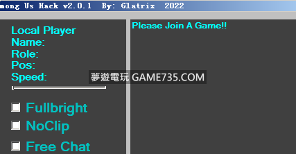 replyreload += ',' + 2289894; 功能: 顯示本地玩家信息 顯示所有玩家信息 加速 全亮 Nocip (新!) 傳送選項(新!) 免費聊天解鎖(新!) 名稱更改器(新!) 使用說明: 1.遊戲內啟動輔助即可。 所有站