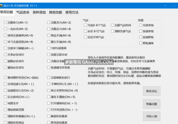 正文摘要:replyreload += ',' + 2290614;應廣大玩家要求製作,所有功能都是免費 支持版本:Steam上的最新版本游戲,失效時請更新修改器 2022/02/20 V2.4.5:修改主角和NPC性格,青鱗池總能升級(非宗主也可),修改神魂技能,青鱗池功效 所有站內附件皆會附上安全掃描報告請會員查看純淨度百分比後判斷使用(adsbygoogle = window.adsbygoogle || []).push({});相關檔案須知:取得檔案前,請先詳細閱讀文章內容避免不必要錯誤與誤會發生。也可多參考文章討論樓層內容了解附件檔案相關討論資訊。 【此文章部分內容隱藏中】 解除隱藏說明教學點擊下方 繼續閱讀文章 後請仔細觀看文章內容 並依照指示進行下一步最後完成解除隱藏後系統會回到此文章自動顯示隱藏內容~繼續閱讀 修改器功能: 無限體力 無限靈力 一擊必殺 無限念力 使用無視境界 物品不減 學習無視資質 精力不減 立即學習秘籍 完美感悟 關系必定成功 快速感悟 技能立即冷卻 快速修煉 逃跑必定成功 100%掉落率 偷竊必定成功 快速器靈親密度 修煉一次滿級 李四不要攔路 子彈時間 全局加速 加速移動 停止世界時間 後台游戲 打開儲物間 雷區不遇敵 打開傳送陣 清除所有秘籍 解鎖所有難度 清除所有物品 修改游戲難度 增加探索范圍 看地圖時傳送 地圖全開 立即刷新拍賣行 增加視距上限 無限法寶耐久 快速道心堅定度 外人也可進入 立即修復昊天眼, 開局可選昊天眼 昊天眼總能突破 神器改為昊天眼 青鱗池總能升級 修改金錢 雙魚玉珮點數 可選9個先天氣運 自定先天氣運 開局全紅氣運 無限氣運時間 清除負面氣運 後天氣運和逆天改命:添加/刪除 後天氣運、修改、替換逆天改命、更換道心。 各種添加窗口:丹藥、技藝書籍、裝備坐騎戒指、材料、興趣、道號,添加所有秘籍、功法、技能、神通、身法、絕技、靈技、心法。 添加昊天眼妖獸技能,自定義刪除器靈,器靈天賦全開,紅色功法品質,自定義功法子類型。 人物屬性窗口:修改 年齡、壽命、魅力、聲望、道點、正道值、魔道值、心情、健康、精力、體力、靈力、念力、幸運、悟性 攻擊、防禦、腳力、功法抗性、靈根抗性、會心、護心、移速、暴擊倍數、抗暴倍數、畫符、藥材、礦材 刀法、槍法、劍法、拳法、掌法、指法、火靈根、水靈根、雷靈根、風靈根、土靈根、木靈根、煉丹、煉器、風水 其他功能窗口:尋找人物位置並傳送,移魂NPC,自定義親密度,修改性格,自定義道魂屬性,修改宗門資源,累計宗門貢獻,神魂技能,青鱗池功效replyreload += ',' + 2290614; |