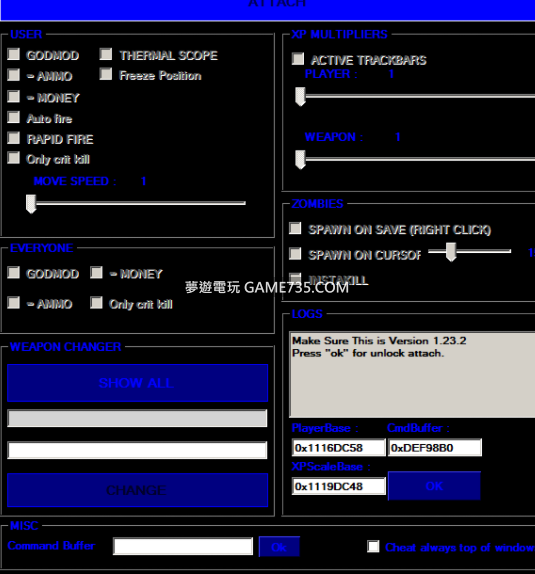replyreload += ',' + 2292135; 適用於1.24.0.1 使用方法: 1.啟動遊戲,加入遊戲 2.管理員身份運行作弊修改器 所有站內附件皆會附上安全掃描報告請會員查看純淨度百分比後判斷使用(adsbygoogle = window.ads
