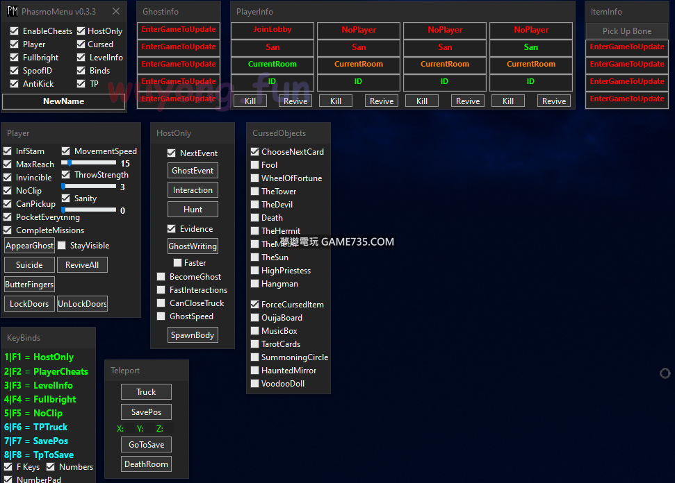 replyreload += ',' + 2293566;PhasmoMenu是一款由CheatEngine所制作的Phasmophobia 恐鬼症免費輔助,因此你需要使用CheatEngine 7.4才能正常運作。 在v0.3.3以後不再需要使用CheatEngine 所有站內附件皆會附