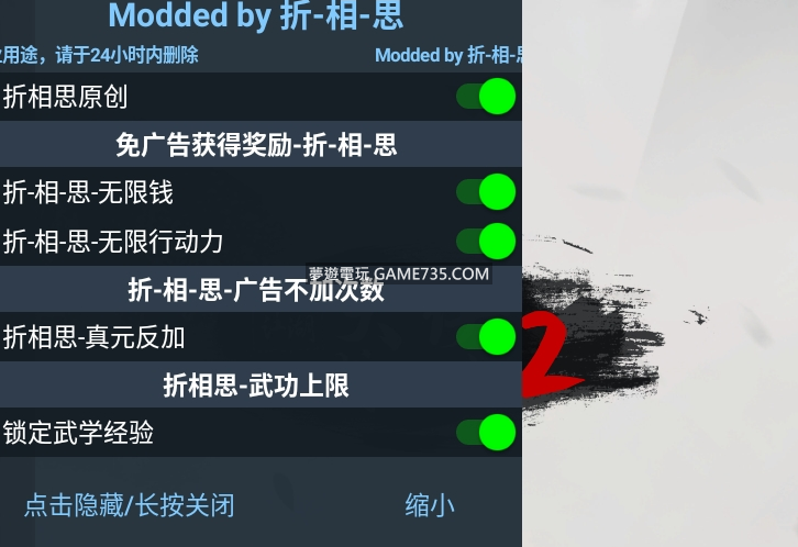 replyreload += ',' + 2295209;過中國防沉迷實名驗證方法 https://www.game735.com/thread-363552-1-1.html 折相思原創 免廣告獲得獎勵 無限錢 無限行動力 廣告不加次數 真元反加 武功上限 鎖定武學經驗