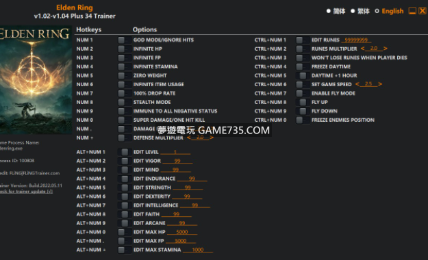 replyreload += ',' + 2295495;選項 數字鍵 1 – 上帝模式/忽略命中 數字鍵 2 – 無限生命值 數字鍵 3 – 無限 FP 數字鍵 4 – 無限耐力 數字鍵 5 – 零重量 數字鍵 6 – 無限物品使用 數字鍵 7 – 100% 掉率 數