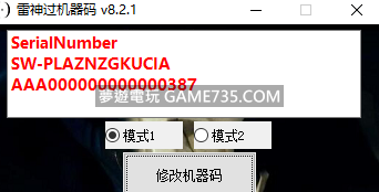 replyreload += ',' + 2296091; 更新內容:處理被特徵處 使用方法: 1.打開雷神過機器碼.exe 2.選擇修改模式,點擊修改機器碼按鈕 3.顯示修改成功,然後關閉雷神過機器碼 4.啟動遊戲 模式1:只修改硬盤機器碼