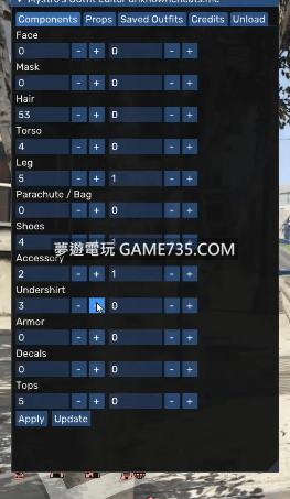 replyreload += ',' + 2296753;Outfit Editor是GTA5的一款服裝編輯器,你可以在線上模式中使用它來創造獨特的服裝造型。 使用方法 運行遊戲 使用任意注入器將DLL注入至游戲中 INSERT開關菜單 所有站內附件