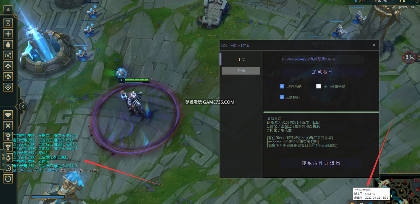 replyreload += ',' + 2296952; Vex已經更新了8個版本了,算是比較主流的換膚軟件了。 相對於其他的換膚,Vex有更好的邏輯,更清爽的界面,更安全高效的代碼,並且免費。是火絨最好的朋友^w^ 歡迎玩家下載遊玩~