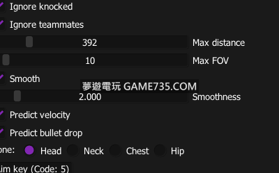 replyreload += ',' + 2297518; 功能: 自瞄 忽略擊倒 忽略隊友 最大自瞄距離 最大自瞄范圍 自瞄平滑 預測速度 預測子彈下墜 自瞄位置 自瞄快捷鍵 透視 方框 頭框 血量 最大透視距離 最大頭框距離 雜項 十字準星