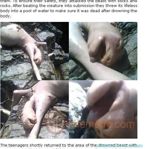 英國每日郵報電子報報導 巴拿馬藍山(Cerro Azul)的洞穴出現一隻生物,外表類似2008年發現的蒙淘克怪獸(Montauk Monster)。 恐慌的巴拿馬青少年拾起石塊攻擊它,之後拿起棍棒將它毆打至死,最後將屍體丟到湖裡的岩
