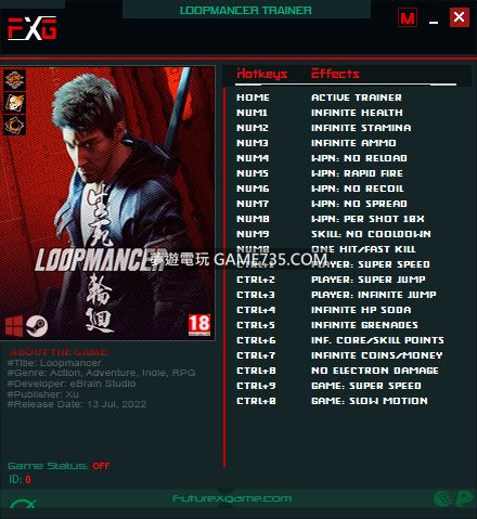 replyreload += ',' + 2300143;選項: HOME - 主動教練 Numpad1 - 無限生命 Numpad2 - 無限耐力 Numpad3 - 無限彈藥 Numpad4 - 不重新加載 Numpad5 - 快速射擊 Numpad6 - 無後坐力 Numpad7 - 不擴散 Numpad8 -