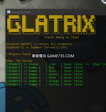 功能 地圖名稱 玩家數量 玩家信息 解鎖所有化妝品 – INSERT 控制台置頂顯示 – \ or |