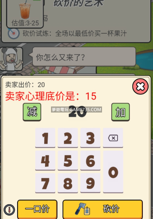 replyreload += ',' + 2300207; 抖音小遊戲砍價的藝術安卓版是款好玩的魔性砍價小遊戲,最大限度的發揮你砍價的優勢,針對不同的物品進行砍價,模擬玩起來很有意思,各種關卡趣味無限,在遊戲裡面可以輕鬆體驗到
