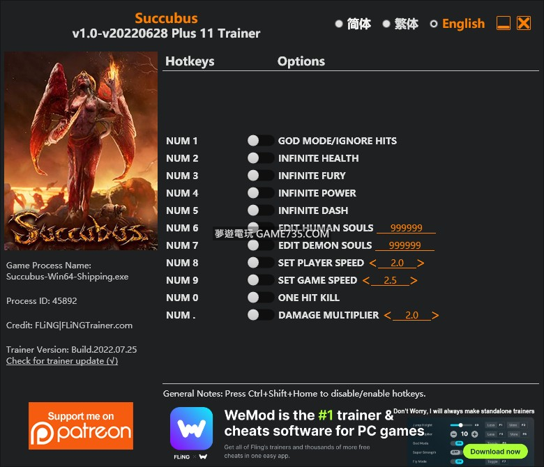 replyreload += ',' + 2300583; 選項 數字鍵 1 - 上帝模式/忽略命中 數字鍵 2 - 無限生命 數字鍵 3 - 無限狂怒 數字鍵 4 - 無限力量 數字鍵 5 - 無限衝刺 數字鍵 6 - 編輯人類靈魂 數字鍵 7 - 編輯惡魔之魂 數字