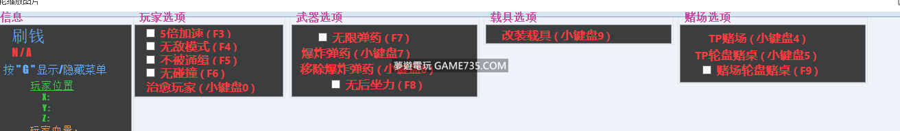 replyreload += ',' + 2301243; C#寫的 只支持Steam平台 遊戲設置成功-窗口化/全屏窗口化模式 使用方法: G = 顯示|隱藏菜單 DEL = 關閉 賭場:下注下到00 最好是贏 2 次,輸 1 次 所有站內附件皆會附上安全