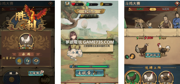 繁育玩法: 1、玩家拿同種的鬥雞進行培育,即可生出品質更好的蛋,繁殖出的小雞的品質就會更好。 2、繁育的次數越多越有幾率提高到高等級的鬥雞。 3、史詩鬥雞需要兩種不同的高等級的鬥雞培育,才有幾率誕生