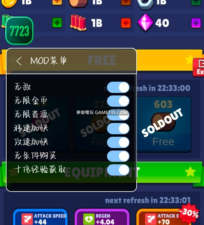 replyreload += ',' + 2302335;1. 無敵 2. 無限金幣 3. 無限資源 4. 無條件購買 5. 移速加快 6. 攻速加快 7. 十倍經驗獲取 遊戲亮點 - 各種精彩的戰爭場景,發揮自己的頭腦進行佈局,指揮自己的軍隊去進
