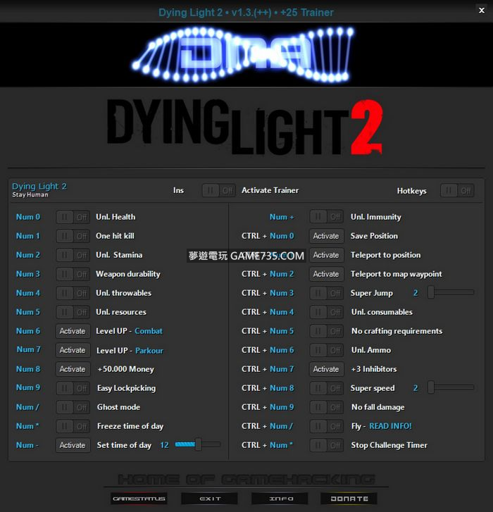 replyreload += ',' + 2302864; 選項: 在主菜單或遊戲暫停時插入激活教練 編號 0 Unl。健康 數字鍵 1 一擊必殺 數字 2 聯合國。耐力 數字鍵 3 武器耐久度 數字 4 聯合國。投擲物 數字 5 聯合國。資源