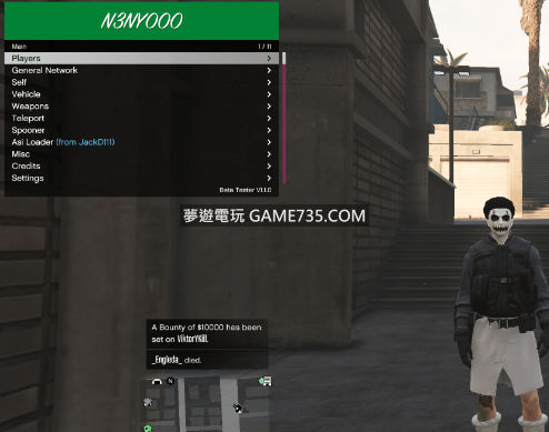 replyreload += ',' + 2303066; 使用方法 將N3NY000資料夾放置在文件目錄 運行遊戲直至看到腳色人物後管理員運行Nenyooo Injector by subversion.exe 快速鍵 F4 = 隱藏/顯示 菜單 方向鍵上下 = 菜單上下 退格鍵 =