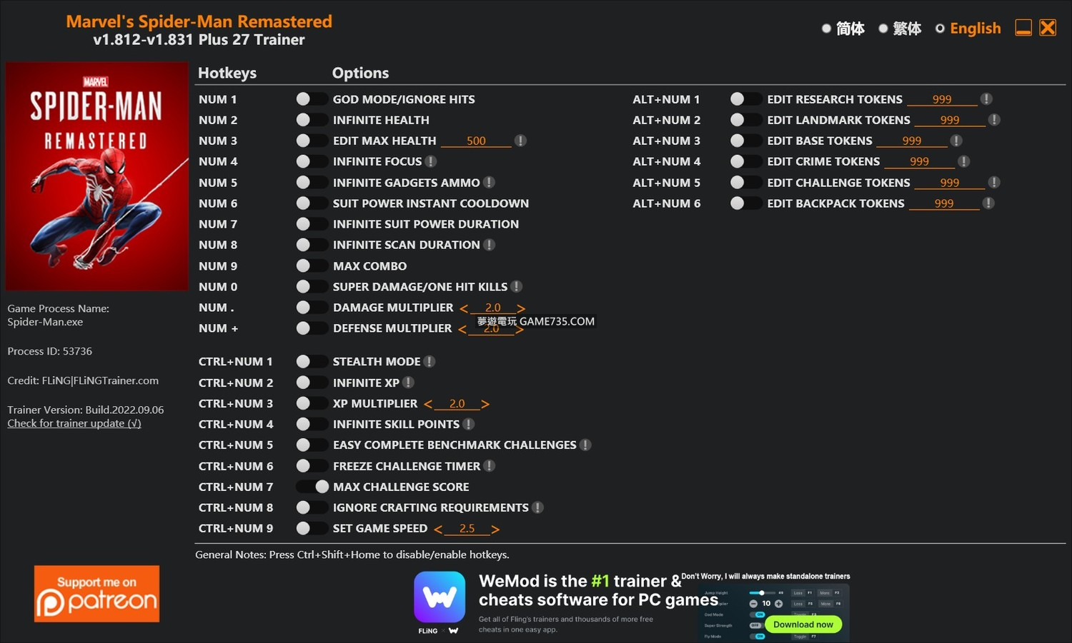 replyreload += ',' + 2303498; 選項 數字鍵 1 - 上帝模式/忽略命中 數字鍵 2 - 無限生命 數字鍵 3 - 編輯最大生命值 數字鍵 4 - 無限專注 數字鍵 5 - 無限小工具彈藥 數字鍵 6 - 套裝力量瞬間冷卻 數字鍵 7 -