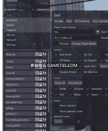 replyreload += ',' + 2303502; YimMenu是一款GTA5的免費輔助,你可以線上上模式中使用它。 使用方式 運行遊戲至看到角色人物 使用任意注入器將YimMenu.dll注入至gta5.exe Ins = 顯示/隱藏菜單 所有站內附件皆
