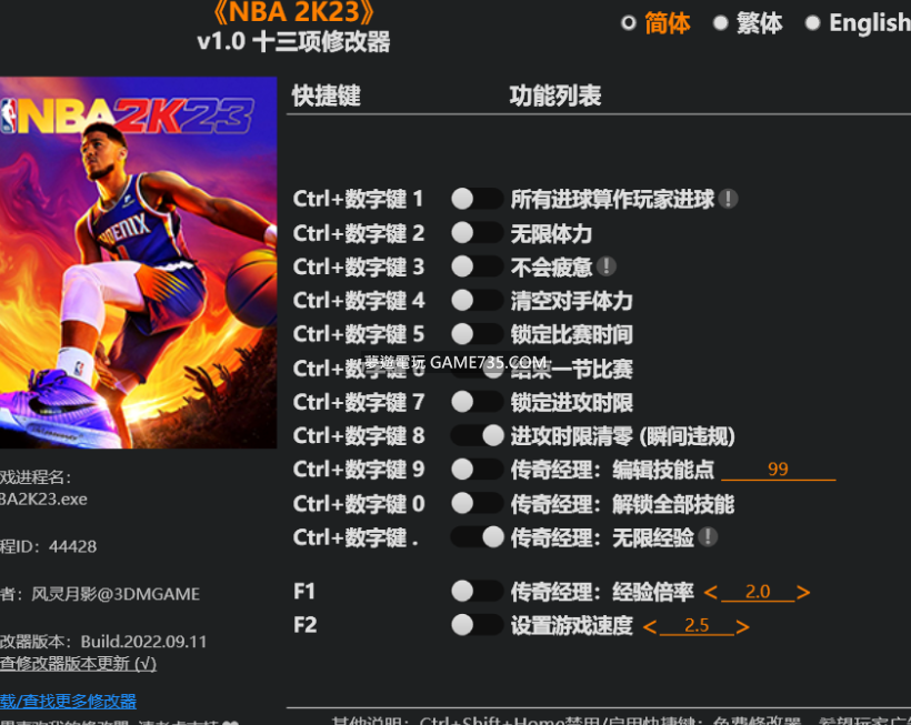 replyreload += ',' + 2304442;本單機修改器永久免費,請勿相信奸商。 由於修改器後台隨正版遊戲更新,所以修改器僅支援正版!不支援破解版遊戲!破解版修改器可以點選下面連結下載! NBA2K23十三項修改器 修改