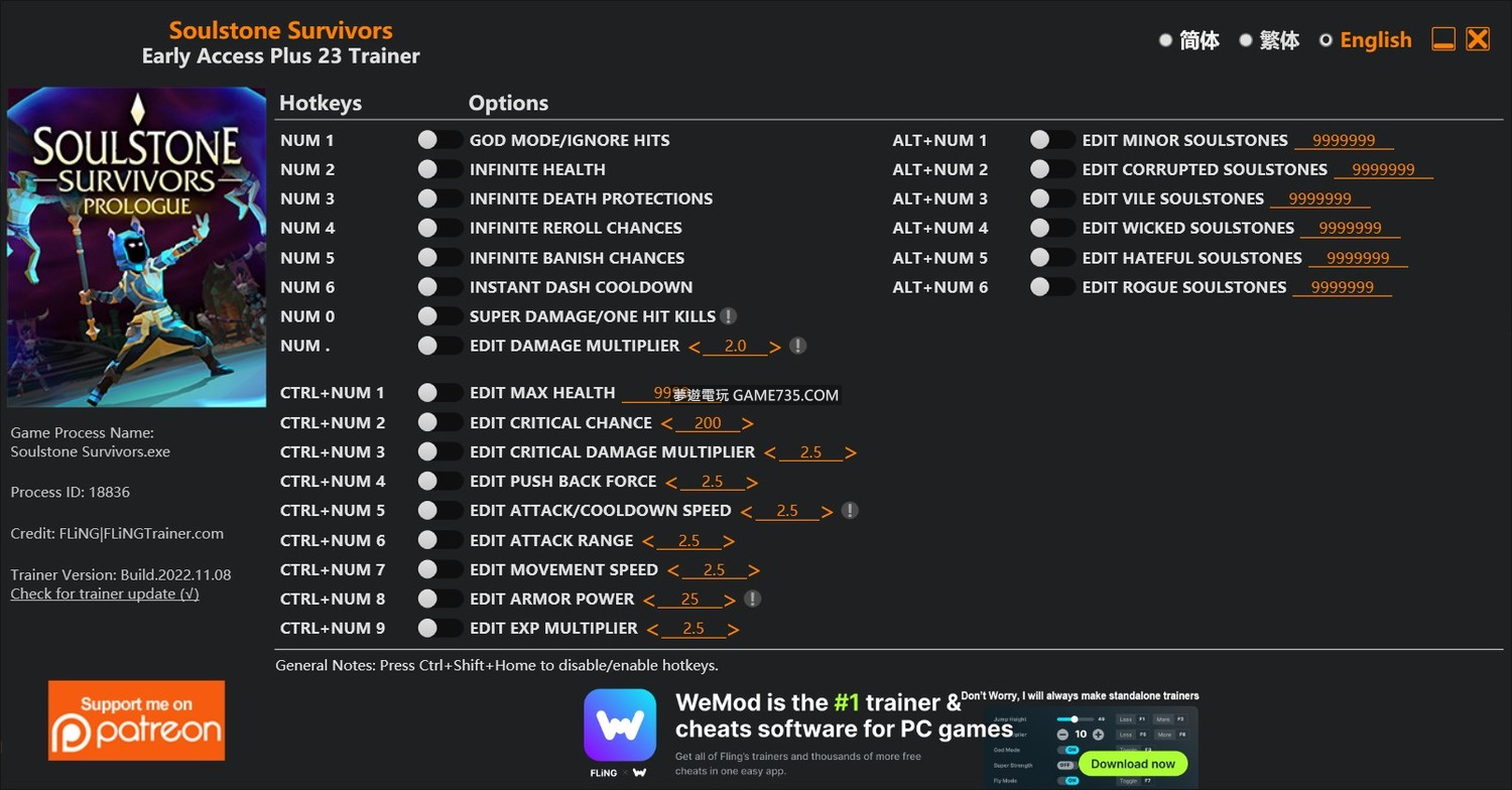 replyreload += ',' + 2307749;選項 數字鍵 1 - 上帝模式/忽略命中 數字鍵 2 - 無限生命 數字鍵 3 - 無限死亡保護 數字鍵 4 - 無限重投機會 數字鍵 5 - 無限放逐機會 數字鍵 6 - 即時衝刺冷卻 數字鍵 0 - 超級傷
