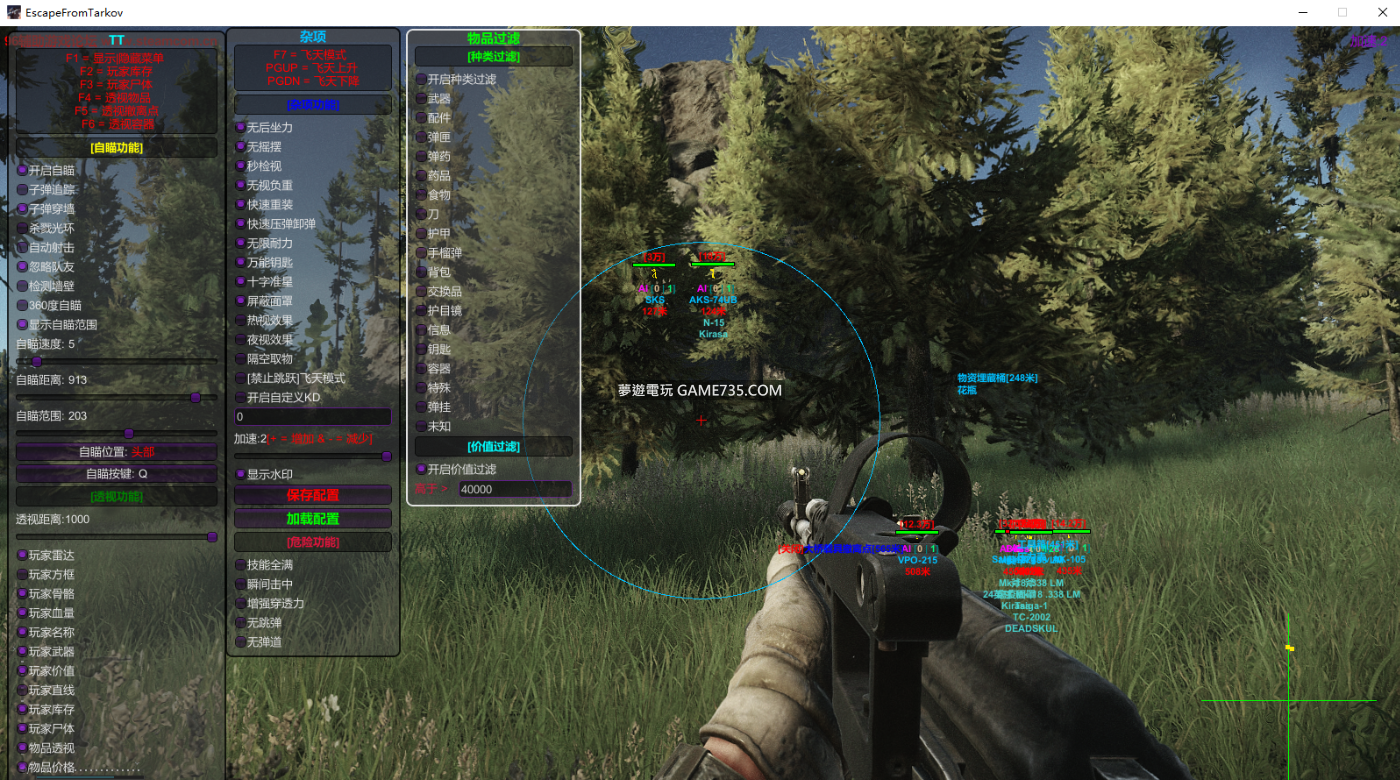 replyreload += ',' + 2307872; 功能: 自瞄功能-> 自瞄玩家 子彈追蹤 子彈穿牆 殺戮光環 自動射擊 掩體檢測 忽略隊友 顯示自瞄範圍 自訂自瞄範圍 自訂自瞄距離 自訂自瞄速度 自訂自瞄位置 自訂自瞄按鍵 透視功