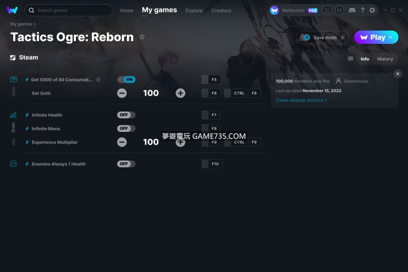 replyreload += ',' + 2308183;TACTICS OGRE: REBORN - TRAINER +6 V15.11.2022 {GREENHOUSE / WEMOD} 選項: 1. 獲得所有消耗品和法術 X900 2.設置哥特 3. 無限健康 4. 無限法力 5. 經驗乘數 6. 敵人總