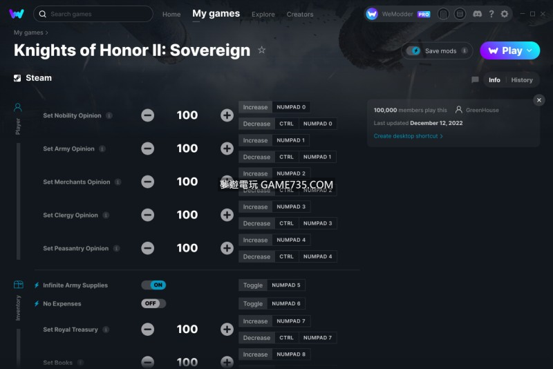 replyreload += ',' + 2309849; 1.設置貴族好感 2.設置軍隊意見 3.設置商家意見 4.設定神職人員的意見 5.設置農民意見 6.無限軍隊補給 7. 無費用 8.設置皇家寶庫 9. 套書 10.設置宗教 11. 設置王國征兵