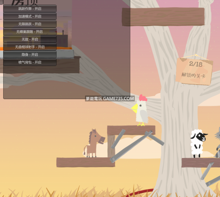 replyreload += ',' + 2310175; 支援版本: 1.9.03 功能: 跳躍作弊 加速模式 無限跳躍 無蜂巢跟隨 無敵 無曲棍球射手 隱身 噴氣背包 使用方法: 1.解壓到遊戲目錄 UltimateChickenHorse_Data\Managed 資料夾,並