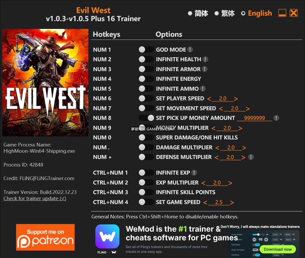 replyreload += ',' + 2310540; Num 1 - 上帝模式 數字鍵 2 - 無限健康 數字鍵 3 - 無限護甲 數字鍵 4 - 無限能量 數字鍵 5 - 無限彈藥 Num 6 - 設置玩家速度 Num 7 - 設置移動速度 Num 8 - 設置提貨金額 數字鍵 9