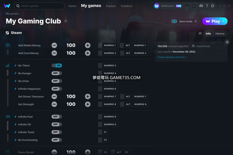 replyreload += ',' + 2310672;MY GAMING CLUB 作弊修改輔助 +13 V26.12.2022 1.添加錢包錢 2.添加卡錢 3. 不渴 4. 沒有飢餓 5.沒有尿 6.無限幸福 7.設置壓力容忍度 8.設定強度 9. 無限燃料 10.無限石