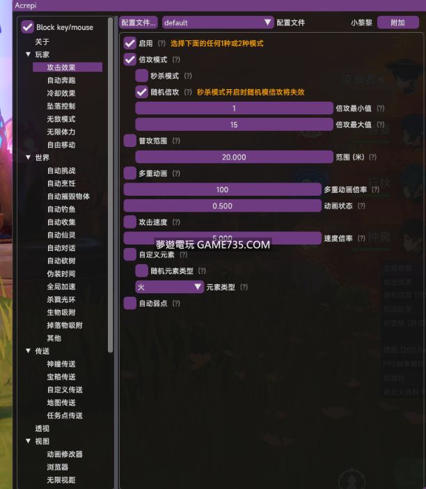 replyreload += ',' + 2312366; 新版20美刀/月,此版本3.4可用免費,xdm白嫖即可 支援功能: 玩家:攻擊效果 自動奔跑 冷卻效果 墜落控制 無敵模式 無限體力 自由移動 世界:自動挑戰 自動烹飪 自動摧毀物體 自動
