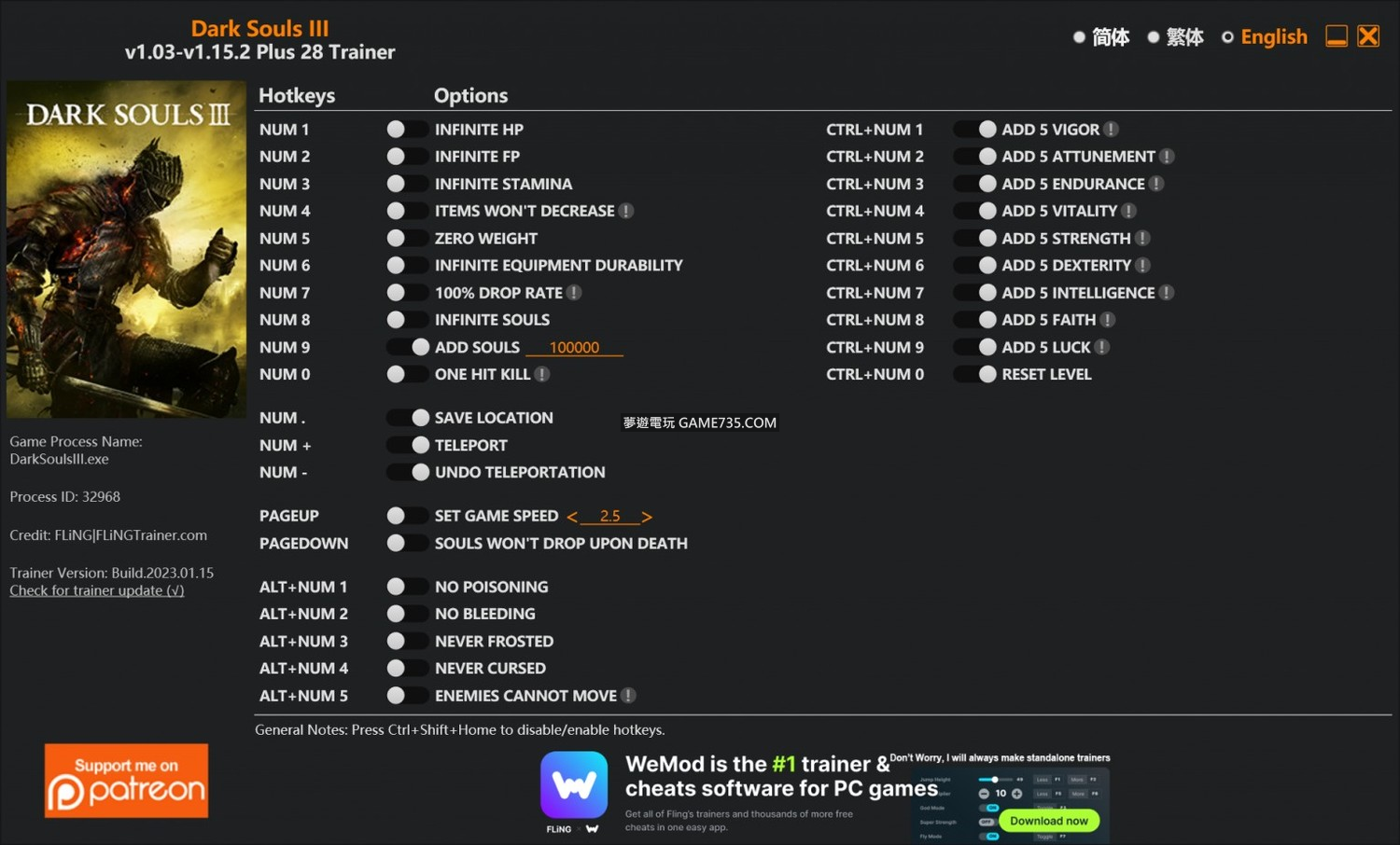 replyreload += ',' + 2312466; 數字鍵 1 - 無限健康 數字鍵 2 - 無限焦點 數字鍵 3 - 無限耐力 數字鍵 4 - 物品不會減少 數字鍵 5 - 零重量 數字鍵 6 - 無限裝備耐久度 數字鍵 7 - 100% 掉率 數字鍵 8 - 無限靈