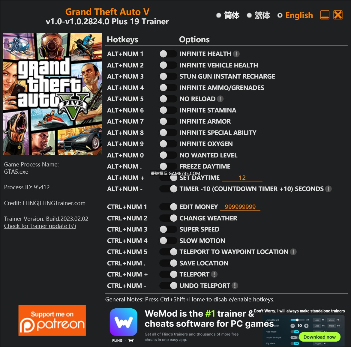 replyreload += ',' + 2313096; Alt+Num 1 - 無限生命值 Alt+Num 2 - 無限車輛健康 Alt+Num 3 - 電擊槍即時充能 Alt+Num 4 - 無限彈藥/手榴彈 Alt+Num 5 - 不重新加載 Alt+Num 6 - 無限耐力 Alt+Num 7 - 無限護甲