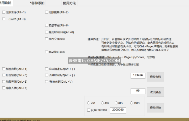 正文摘要:replyreload += ',' + 2313991;關鍵詞:霍格沃茨遺產修改器、Hogwarts Legacy Trainer 2023/02/24 v1.5.2:新增潛行模式,完善一擊必殺,自由視角功能 2023/02/22 v1.5.0:新增自由視角,新增野獸 修改器功能: 無限生命(Alt+1) 一擊必殺(Alt+3) 藥品不減(Alt+5) 魔藥時間不減 咒術立即冷卻 物品皆可丟棄 全域加速(Alt + ] ) 子彈時間(Alt + [ ) 加速奔跑(CtrL+1) 隱藏介面(CtrL+5) 隱藏人物模型(CtrL+6) 後台時暫停遊戲(CtrL+0) 修改金錢 修改天賦點 自訂經驗 多倍經驗 所有站內附件皆會附上安全掃描報告請會員查看純淨度百分比後判斷使用(adsbygoogle = window.adsbygoogle || []).push({});相關檔案須知:取得檔案前,請先詳細閱讀文章內容避免不必要錯誤與誤會發生。也可多參考文章討論樓層內容了解附件檔案相關討論資訊。 【此文章部分內容隱藏中】 解除隱藏說明教學點擊下方 繼續閱讀文章 後請仔細觀看文章內容 並依照指示進行下一步最後完成解除隱藏後系統會回到此文章自動顯示隱藏內容~繼續閱讀 replyreload += ',' + 2313991; |