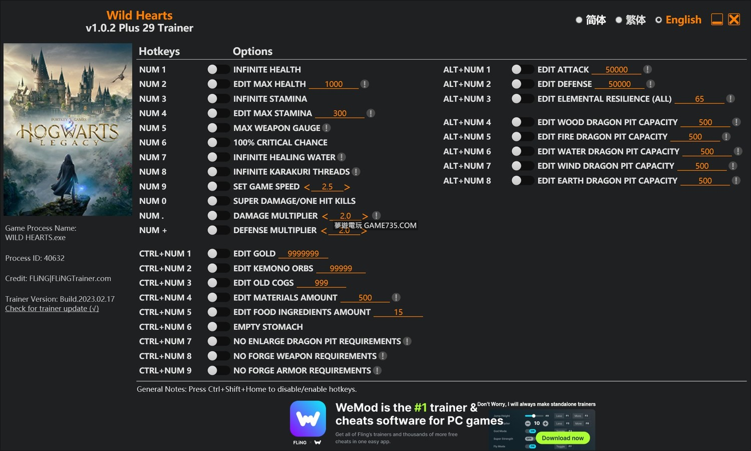 replyreload += ',' + 2314273; 選項 數字1 - 無限生命值 數字2 - 編輯最大生命值 數字3 - 無限耐力 數字4 - 編輯最大耐力 數字5 - 最大武器量表 數字6 - 100%暴擊率 數字7 - 無限治療之水 數字8 - 無限傀儡線