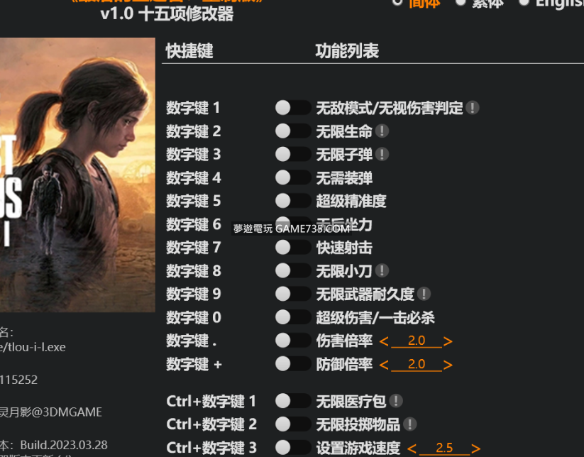 replyreload += ',' + 2316146;《最後的生還者:重製版(The Last of Us Part I)》v1.0 十五項修改器 By 風靈月影 基本功能: 點選簡體、繁體、English,可以切換語言 (切換語言後修改器將把該語言設定為默