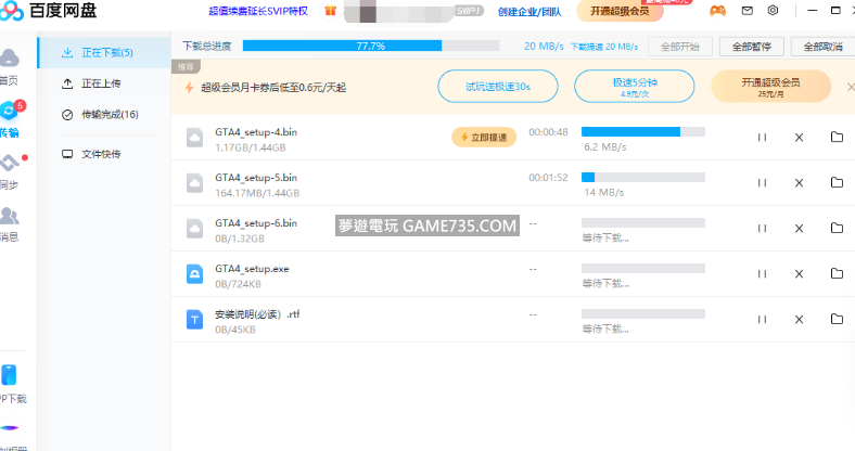 replyreload += ',' + 2316460; 使用說明:先運行百度網盤下載東西,然後管理員身份運行工具點選“破解”按鈕即可達到下載不限速 註:下載速度雖然沒有花錢的快,但解鎖還是可以的,使用該工具不僅提速進度條