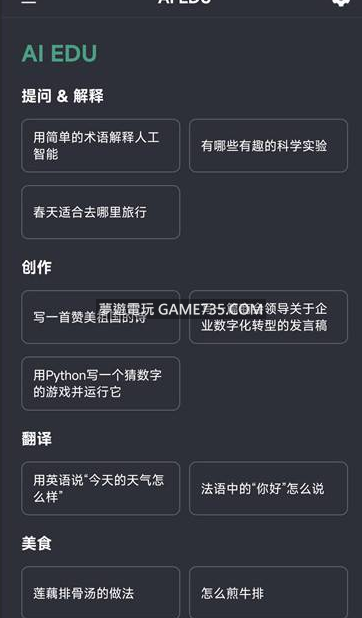replyreload += ',' + 2316465; 軟體名稱:AI EDU 軟體版本:0.5.0 軟體大小:45.7mb 特別說明:無 測試機型:小米9/紅米k50 官方介紹:名人工智慧語言模型,被設計用於回答各種問題和提供幫助。可以進行自