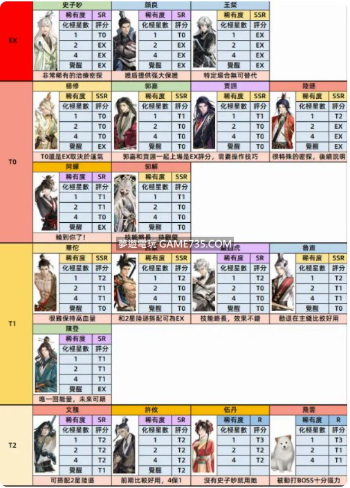 replyreload += ',' + 2317016; 代號鳶密探強度排行榜 評分標準 密探排行榜中,評分僅針對密探在戰鬥中的強度。默認為T3評分,其中: EX: 人權卡級別 To: 十分強力且通用 T1: 比較強力 T2: 特定環境有用 強度差異