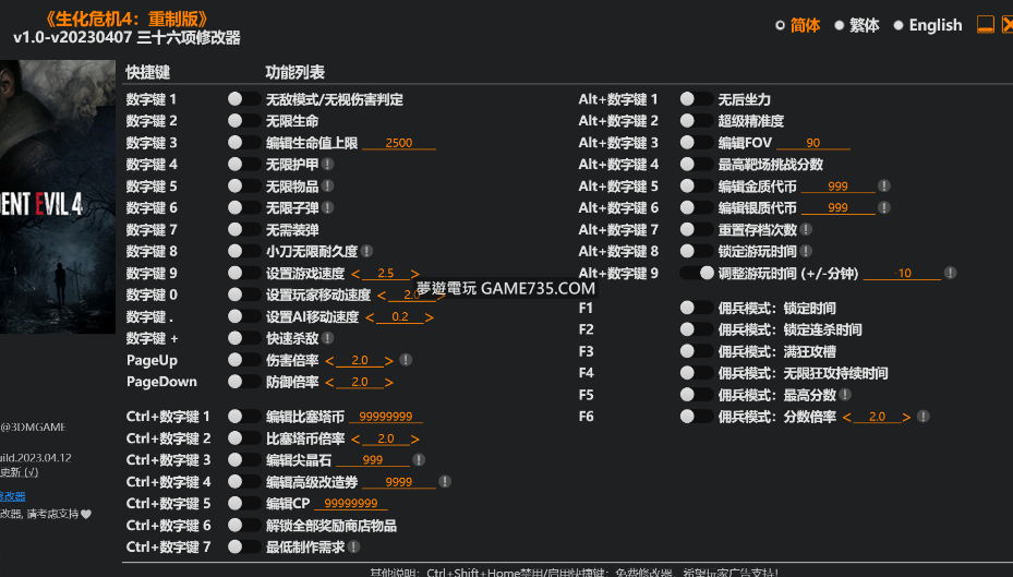 replyreload += ',' + 2317336;對應遊戲版本:v1.0-v20230407+/如無意外全部或部分功能也會支援其他後續版本 這個修改器需要使用REFramework by praydog來繞過遊戲的反作弊保護,請按照以下步驟操作: 1. 複製"din