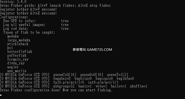 replyreload += ',' + 2318725; 版本:3.4.0 Hutao Fisher指南:Alt+V啟動漁夫;Alt+X停止漁夫 註冊快速鍵Alt+V成功! 註冊快速鍵Alt+X成功! 組態: 使用GPU進行推斷:真 記錄所有有用的圖像:真 記錄魚竿資料:真 要捕捉