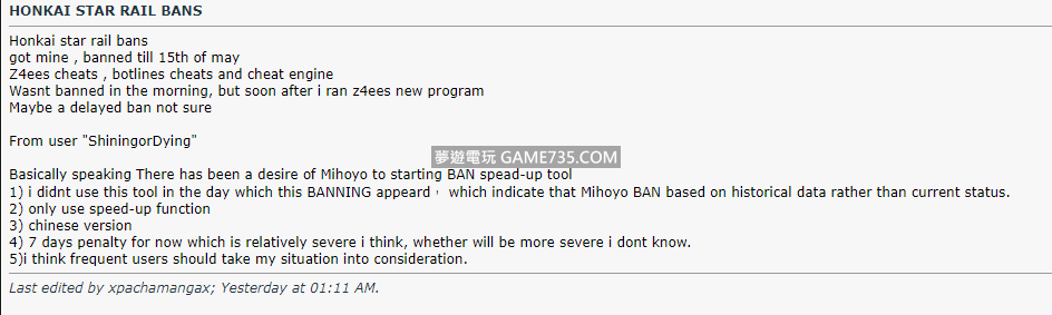 關於目前崩壞:星穹鐵道被禁封帳號的一些網路討論 BAN